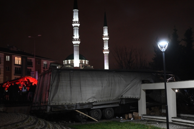 Ankara'nın Altındağ ilçesinde, parktaki beton sütunlara çarpan tırın sürücüsü yaşamını yitirdi.