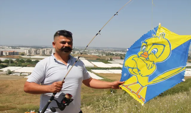 Antalya'da bir kişi şenlikte olta ile uçurtma uçurdu