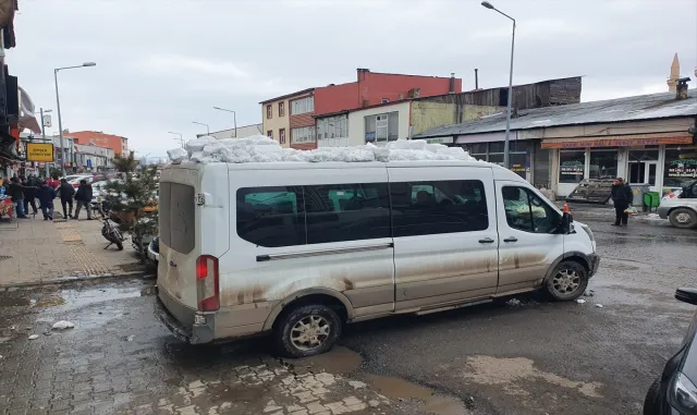 Ardahan'da üzerine kar ve buz kütlesi düşen minibüste hasar oluştu