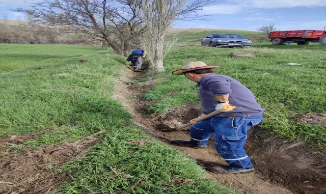 Sivas'ın Gemerek ilçesine bağlı Çepni beldesinde tarımsal sulama için kullanılan kanallar temizleniyor