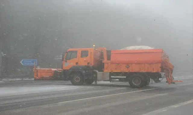 Bolu Haberleri - İstanbul ve Ankara arasında ulaşımı sağlayan güzergahlardan D-100 kara yolunun Bolu Dağı kesiminde kar yağıyor.Bölgede etkili olan sağanak, kara yolunun Abant kavşağı, Bakacak, Karanlıkdere ve Seymenler mevkilerinde yerini kara bıraktı.Yağışın ardından kısmen beyaz örtüyle kaplanan ve sisin de hakim olduğu güzergahta Karayolları ekipleri, kar küreme ve tuzlama çalışması yürütüyor.Bolu kent merkezinde ise aralıklarla sağanak etkili oluyor.