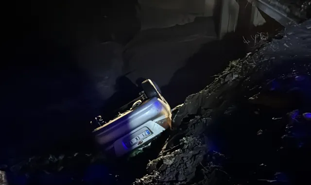 Erzurum'da dereye yuvarlanan araçtaki 4 kişiden 3'ü yaralandı.