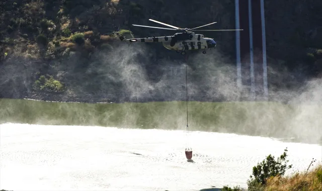 İzmir En Son dakika Haber - İzmir'in Ödemiş ilçesindeki ormanlık alanda dün çıkan yangına havadan ve karadan müdahale sürüyor.Tosunlar Mahallesi Manastır mevkisinde başlayan ve yerleşim yerlerine sıçrayan yangını kontrol altına alma çalışmaları gece de devam etti.Havanın aydınlanmasıyla hava unsurları da alevlerle mücadeleye destek verdi.Çalışmalar, İzmir orman Bölge Müdürlüğüne bağlı 2 uçak, 9 helikopter, 35 arazöz, 9 su ikmal aracı ve 4 dozer ile yürütülüyor.Tosunlar ve Suçıktı mahallelerinin ardından Köseler Mahallesi de tedbir amacıyla tahliye edildi. Tosunlar Mahallesi'nde birçok ev zarar gördü.