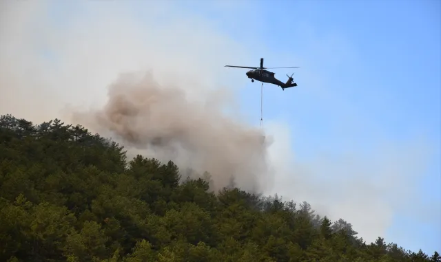 Eskişehir En Son Haber - Eskişehir'in Seyitgazi ilçesinde çıkan orman yangınına havadan ve karadan müdahale ediliyor.İlçeye bağlı Büyükyayla Mahallesi yakınlarındaki ormanlık alanda henüz belirlenemeyen nedenle yangın çıktı.İhbar üzerine bölgeye Eskişehir Orman Bölge Müdürlüğüne bağlı ekipler sevk edildi.Ekipler, havadan ve karadan müdahaleyle alevleri kontrol altına almaya çalışıyor.Eskişehir Valisi Hüseyin Aksoy, X hesabından yaptığı açıklamada, Seyitgazi ilçesi Büyükyayla Mahallesi'nde saat 10.30'da orman yangını meydana geldiğini kaydetti.Yangına havadan ve karadan çok sayıda ekiple müdahale edildiğini belirten Aksoy, şunları kaydetti:8 helikopter, 1 uçak, 20 arazöz, 5 su ikmal aracı, 6 dozer, 6 greyder, 3 treyler, 1 vinç, 4 TOMA, 2 ambulans ve 112 Acil Sağlık, emniyet, jandarma, itfaiye, AFAD, Kızılay ekiplerinden oluşan 144 personel ile tüm kurumlarımızın işbirliğiyle yangının kontrol altına alınması için çalışmalar yoğun şekilde devam etmektedir. Yangından etkilenen tüm hemşehrilerimize geçmiş olsun dileklerimi iletiyor, vatandaşlarımızdan özellikle bu sıcak günlerde orman yangınları konusunda azami hassasiyet göstermelerini önemle istirham ediyorum.Seyitgazi Kaymakamı Abdulkadir Zengin de beraberindekilerle yangın yerine gelerek çalışmaları inceledi.Bir iş makinesi, alevlerin arasında kalarak kullanılamaz hale geldi.Yangını söndürmek için alevlerle cansiperane mücadele eden ekipler, Eskişehir Orman Bölge Müdürü İsmail Çetin koordinasyonunda çalışmalarını sürdürüyor.- 100 metre uzaklıktaki alevler 10 saniye sonra etrafımızı sardıEti Maden İşletmeleri Kırka Bor Müdürlüğünde kepçe operatörü olarak çalışan ve yangın bölgesinde çalışmalara destek veren Birkan İçen, gazetecilere yaptığı açıklamada, işletmenin bütün ekipmanlarının yangın bölgesine yönlendirildiğini söyledi.Çalışma arkadaşlarıyla alevlerin önünü kesmek için kepçeyle ağaçları yıkıp arazözlere de yol açtıklarını belirten İçen, şöyle konuştu:10 saniye içerisinde bütün alev kepçenin üzerine geldi. O kepçedeki arkadaşım kendisini zor kurtardı. Ancak kepçe zarar gördü. Bölgede bulunan greyderi kullanan arkadaşız da aracı bırakıp kaçtı. Greyderin üzerine helikopterle su dökülünce yanmaktan kurtuldu. 100 metre uzaklıktaki alevler 10 saniye sonra etrafımızı sardı. Yangında kaçtıktan sonra bir süre ulaşamadığımız kepçe operatörü arkadaşımızı aramalar sonunda bulduk.