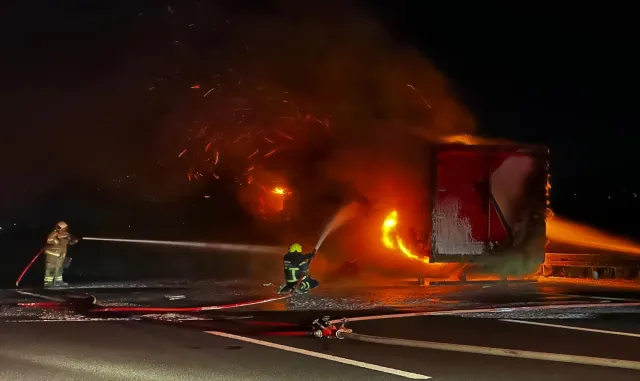Alevler kısa sürede kamyonu sararken, ihbar üzerine bölgeye jandarma ve itfaiye ekipleri yönlendirildi.İtfaiye ekiplerinin yaklaşık 2 saat süren müdahalesinin ardından yangın kontrol altına alınarak söndürüldü. Ekiplerin soğutma çalışması sürüyor.Yangın nedeniyle bir süre ulaşıma kapatılan otoyolun Bursa gidiş istikameti tekrar trafiğe açıldı.Kamyonun kasasında boya malzemelerinin olduğu öğrenildi.