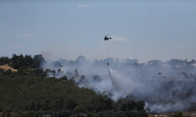 Çanakkale En Son dakika Haber - Çanakkale'de tarım arazisinde çıkan ve ormanlık alana yayılan yangın kontrol altına alındı.Merkeze bağlı Erenköy ile Yenimahalle köyleri arasındaki tarım arazisinde bilinmeyen nedenle yangın çıktı.Rüzgarın etkisiyle ormanlık alana yayılan yangına müdahale için Orman Bölge Müdürlüğüne bağlı helikopterler ve uçaklar ile havadan, yer ekipleriyle de karadan müdahale başladı.Orman ekiplerinin karadan yaptıkları müdahaleye İl jandarma Komutanlığı personeli de destek verdi.İl ve ilçe belediyelerinin itfaiye araçlarıyla su desteği sağladığı yangında, Yenimahalle köyünde yaşayanlar da kendi imkanlarıyla alevlere müdahale etmeye çalıştı.Ekiplerin yoğun müdahalesiyle kontrol altına alınan yangın bölgesinde soğutma çalışmaları devam ediyor.Çanakkale Valiliğinden yapılan açıklamada, Erenköy ve Yenimahalle köyleri kırsalında çıkan yangına, 7 uçak ve 5 helikopter ile havadan, 19 arazöz, 3 dozer, 5 itfaiye aracı ve 176 personel ile karadan müdahale edildiği belirtilerek, Yangın tamamen kontrol altına alınmıştır. Soğutma çalışmaları devam etmektedir. Yangınlarda 8 hektar orman alanı, 11 hektar ziraat alanı olmak üzere toplam 19 hektar alan etkilenmiştir. ifadelerine yer verildi.