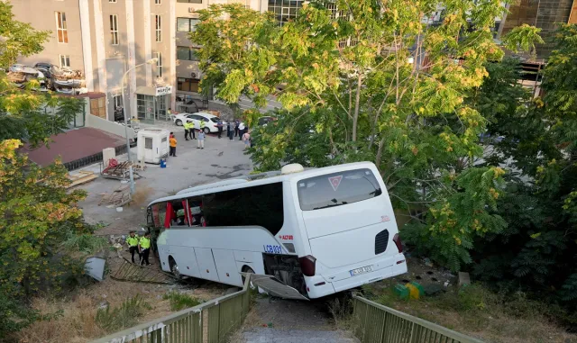 İstanbul En Son dakika Haber - Maltepe'de kontrolden çıkan servis otobüsünün köprülü kavşaktan düşmesi sonucu 1'i ağır 8 kişi yaralandı.Sabah saatlerinde, Başöğretmen Caddesi'nden D-100 kara yolu istikametine seyreden 34 LCB 031 plakalı servis otobüsü, Maltepe Köprüsü kavşağında aydınlatma direği ve yön levhalarına çarptı.Çarpmanın şiddetiyle bariyerleri aşan otobüs, köprülü kavşakta yaklaşık 10 metre yükseklikten şarampole düştü. İhbar üzerine kaza yerine itfaiye, polis ve sağlık ekipleri sevk edildi.Kazada yaralanan 1'i ağır 8 kişi bulundukları yerden çıkarılarak ambulanslarla hastaneye kaldırıldı.Çevrede güvenlik önlemi alan ekipler, otobüsü bulunduğu yerden kaldırdı.Vinç yardımıyla kaldırılmaya çalışılan otobüsün halatların kopması nedeniyle düşmesi Cep telefonu kamerasınca kaydedildi.