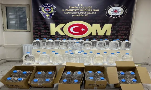 İzmir En Son dakika Haber - İzmir'de düzenlenen operasyonda 3,5 ton etil alkol ile 600 şişe Sahte içki ele geçirildi, gözaltına alınan 35 şüpheliden 5'i tutuklandı.İl Emniyet Müdürlüğü Kaçakçılık Suçlarıyla Mücadele Şubesi ekipleri, İzmir Cumhuriyet Başsavcılığı koordinesinde Aliağa, Balçova, Bayraklı, Bornova, Buca, Karabağlar, Karşıyaka, Konak ve Ödemiş ilçelerinde belirlenen adreslere operasyon gerçekleştirdi.Adreslerde yapılan aramalarda 3,5 ton etil alkol ile 600 şişe sahte içki ele geçirildi, 35 şüpheli gözaltına alındı.İşlemlerinin ardından adliyeye sevk edilen 5 şüpheli çıkarıldığı hakimlikçe tutuklandı, 30 şüpheli ise adli kontrol şartıyla serbest bırakıldı.Ayrıca eğlence mekanlarına yönelik gerçekleştirilen uygulamada, sahte içki tespit edilen 4 iş yeri hakkında işlem başlatıldı.