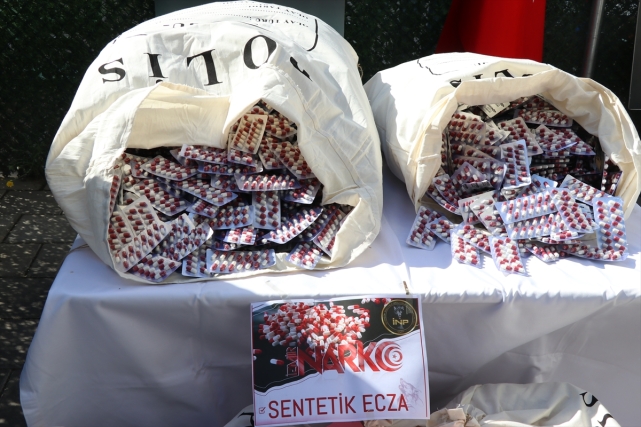 Operasyonda 881 bin 800 sentetik ecza hapı, 750 bin boş hap kapsülü ile sentetik eczaları basmak için kullanılan makine ele geçirildi, T.S. ve U.A. gözaltına alındı.