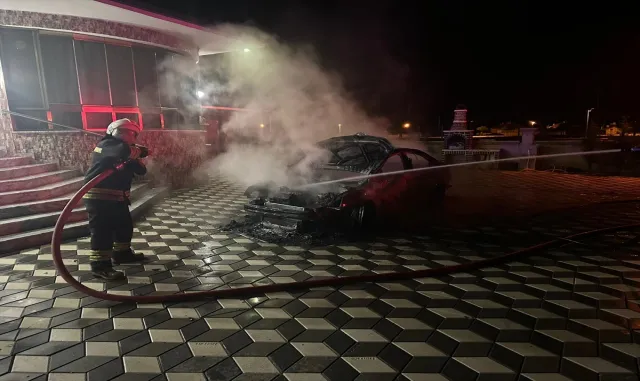 İhbarla olay yerine gelen itfaiye ekiplerinin müdahalesiyle yangın söndürdü.Yangında otomobil kullanılamaz hale geldi.