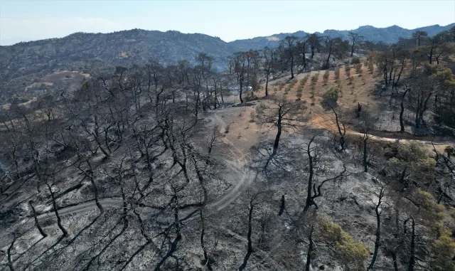 Manisa En Son dakika Haber - Manisa'nın Akhisar ve Ahmetli ilçesindeki orman yangınlarında zarar gören alanlar havadan görüntülendi.