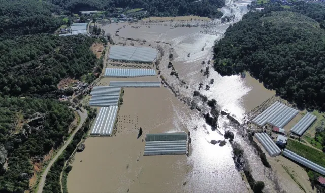 Muğla ile Antalya'da su basan seralar havadan görüntülendi
