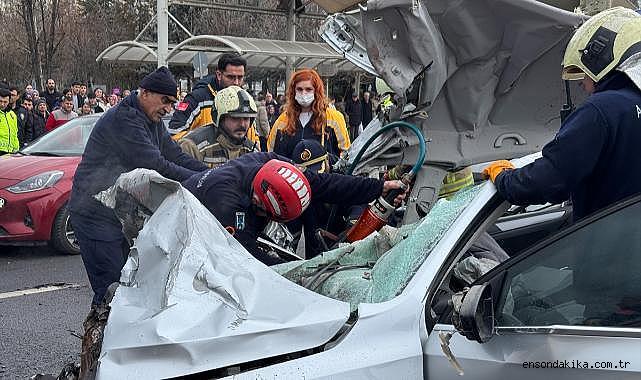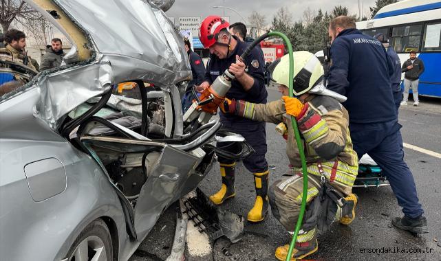 Ankara En Son Haber - Başkentte otomobilin duraktaki EGO otobüsüne ve yoldaki 2 araca çarptığı kazada 1'i ağır 4 kişi yaralandı.