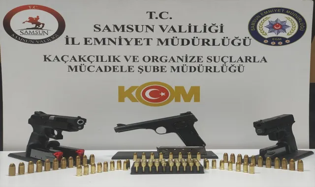 Samsun'daki ruhsatsız silah operasyonunda 1 kişi yakalandı.İl Emniyet Müdürlüğü Kaçakçılık ve Organize Suçlarla Mücadele Şube Müdürlüğü ekiplerince Atakum ilçesinde bir adrese operasyon düzenlendi.Ekipler, belirledikleri ikamette yaptıkları aramada 3 adet ruhsatsız tabanca ve 97 adet tabanca fişeği ele geçirildi.Olayla ilgili bir şüpheli gözaltına alındı.