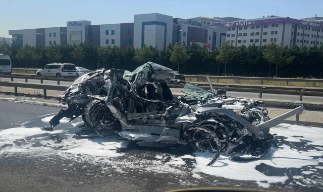 Sancaktepe'de tır ile kamyon arasında kalan araçtaki 2 kişi yaralandı