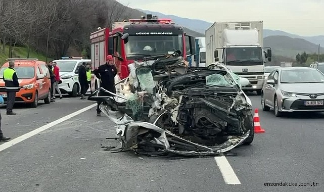 Düzce - Anadolu Otoyolu'nun Düzce kesiminde tıra çarpan SUV tipi araçtaki 1 kişi hayatını kaybetti, 1 kişi yaralandı.