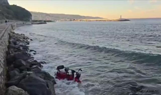 Üç tekerlekli motosiklet denize düştü: 2 kişi hastaneye kaldırıldı