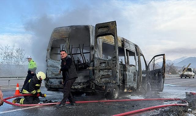 Konya En Son dakika Haber - Seydişehir-Konya kara yolunda seyir halinde yanan yolcu minibüsü kulanılamaz hale geldi. Seydişehir'den Konya'ya giden yolcu minibüsü, Çavuş Mahallesi yakınlarında henüz bilinmeyen bir nedenle alev aldı.