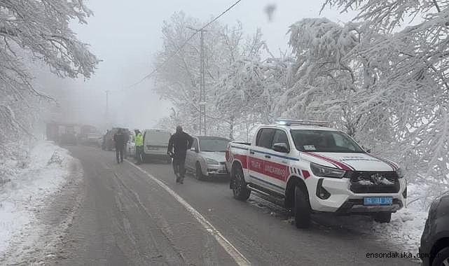Zonguldak En Son dakika Haber - Zonguldak ve Sakarya'da kar nedeniyle kayganlaşan yolda kaza yapan otomobillerdeki 5 kişi yaralandı.Zonguldak-Karadeniz Ereğli kara yolunda, F.Ö'nün (35) kullandığı 78 ACM 915 plakalı otomobil, kar nedeniyle kayganlaşan yolda kontrolden çıkarak bariyerlere çarptı.İhbar üzerine kaza yerine polis ve sağlık ekibi sevk edildi.Kazada yaralanan yolcular R.A. ve K.H, sağlık personelinin ilk müdahalesinin ardından hastaneye kaldırıldı.Sakarya'da Hendek-Kocaali ilçesi yolu Selmandede mesire alanı bölgesinde B.Y. idaresindeki 34 EU 9224 plakalı otomobil, kardan dolayı sürücünün direksiyon hakimiyetini kaybetmesi sonucu şarampole devrildi.İhbar üzerine kaza yerine sağlık, itfaiye, Sakarya Arama Kurtarma Ekibi ve jandarma ekipleri sevk edildi.Kazada sürücü ile A.C.Y. ve E.Y. yaralandı.Bulunduğu yerden çıkarılarak sedyeye alınan yaralı E.Y, vinç yardımıyla ambulansın bulunduğu alana taşındı.E.Y. hastaneye kaldırılırken, diğer yaralılara sağlık personelince ayakta müdahale edildi.Güzergahtaki trafik akışı, jandarma ekiplerince bir süre kontrollü sağlandı.